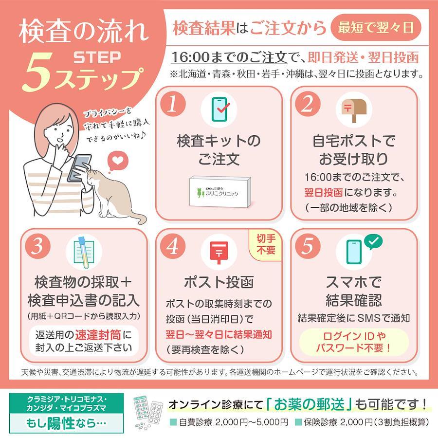 郵送検査キット 女性用:性器感染の 淋菌(淋病) クラミジア を、膣分泌物検査。 16時までのご注文で即日発送。検査結果はご注文から最短翌々日。 匿名の性病検査キット。プライバシーに配慮した無地箱で自宅ポストにお届け。 シンプルな申込みで、スマホのショートメッセージへ結果通知。 土日祝日 年末年始 お盆休み GW も「発送 検査 結果通知」を行っております。
