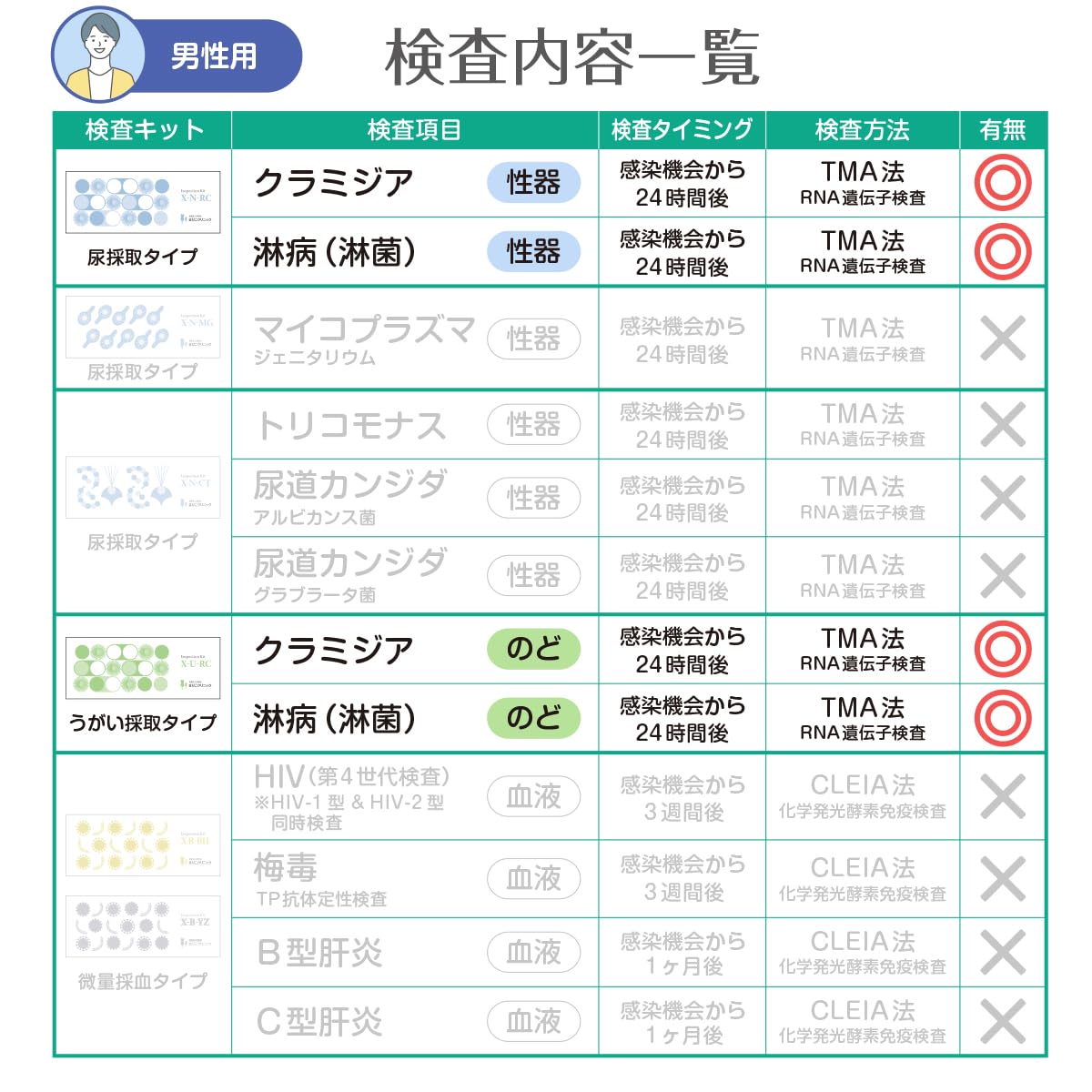 郵送検査キット 男性用:喉と性器感染の 淋菌(淋病) クラミジア を、うがい 尿 で検査。 16時までのご注文で即日発送。検査結果はご注文から最短翌々日。 匿名の性病検査キット。プライバシーに配慮した無地箱で自宅ポストにお届け。 シンプルな申込みで、スマホのショートメッセージへ結果通知。 土日祝日 年末年始 お盆休み GW も「発送 検査 結果通知」を行っております。