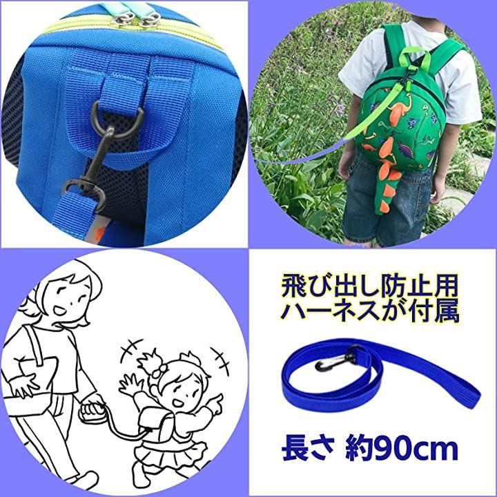 ・恐竜柄リュックには飛び出し防止用の約90cmの取り外し可能なハーネス(紐)が付属。