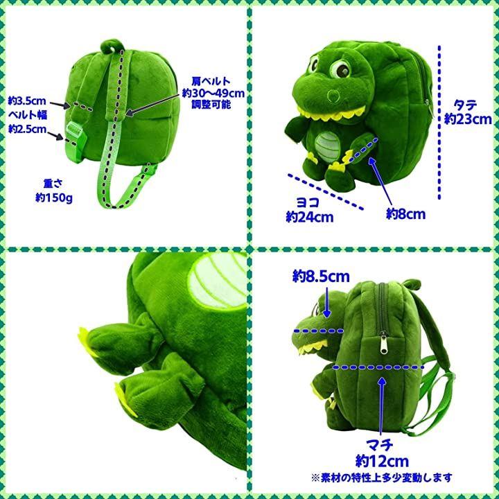 ・立体的な恐竜がリュックサックの外側にかわいくデザインされているから、どこへ行くにも恐竜と一緒。 恐竜の手足がぶらぶらとしているので、お子様が歩くたびに揺れるから見てても可愛く、背負ってもかわいいぬいぐりみリュックです。