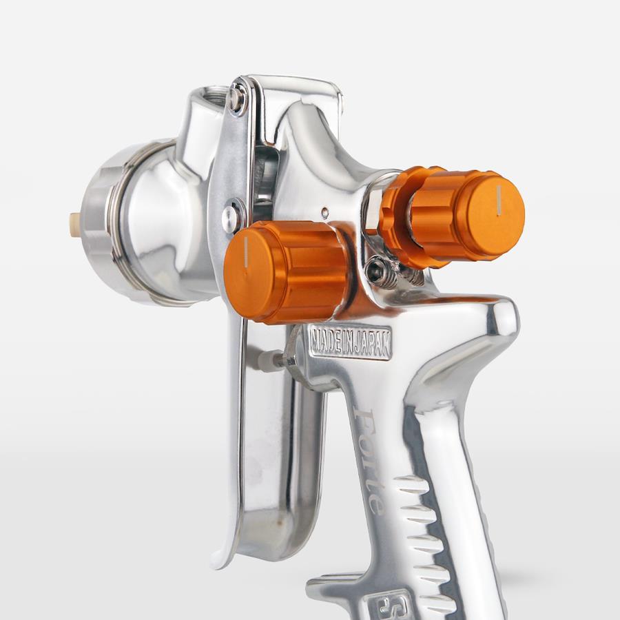 恵宏製作所独自のS.C低圧高微粒化空気キャップをForte専用に新たに設計しました。低圧でも霧化効率が高く、微粒化した塗料が効率よく塗着します。低圧で塗料の跳ね返りがすくないので、環境への負荷や作業者の暴露も軽減されます。手に自然と馴染むラウンドボディ形状を新たに採用しています。スプレーマンの作業負担を軽減し、作業の効率化を図れます。