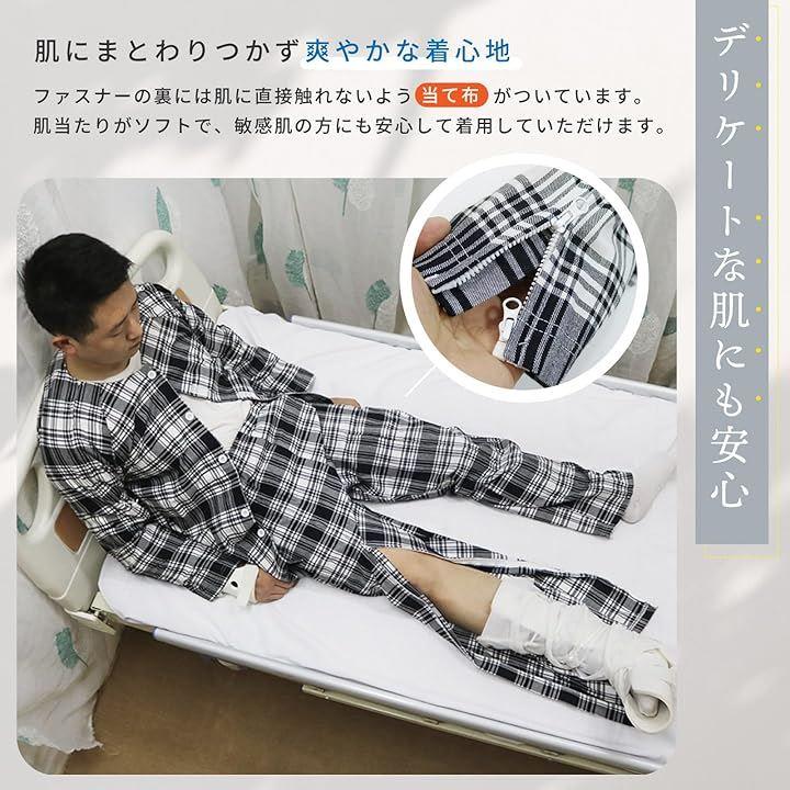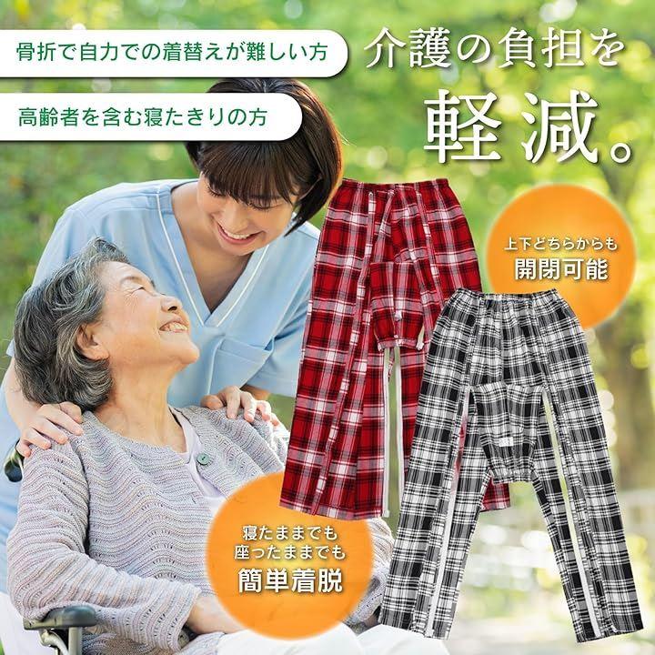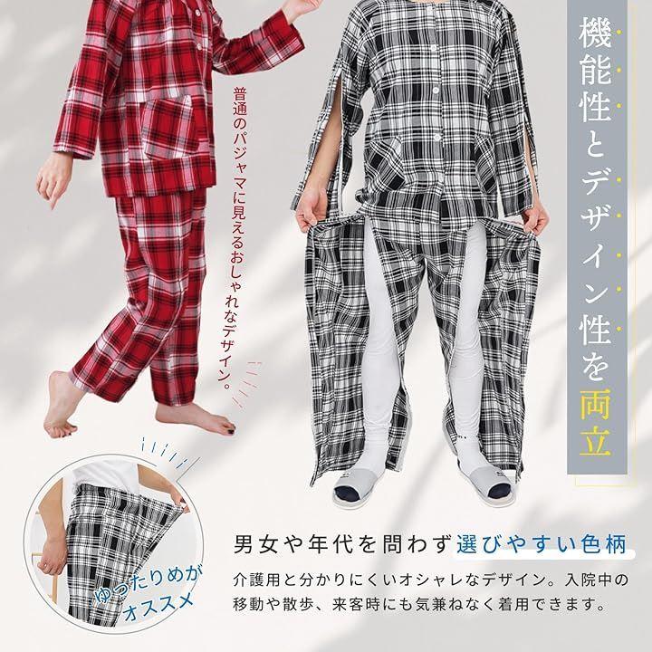 見た目は普通のパジャマと変わらず、介護用と分かりにくいため、入院中の病院内での移動や散歩、来客時にも気兼ねなく履けるのがうれしいポイント。