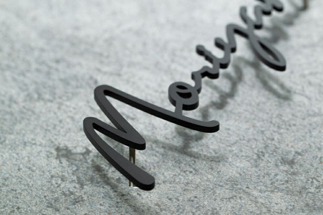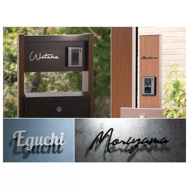 機能門柱などの限られたスペースに取り付け可能な小さめの手書き風切文字サイン。
