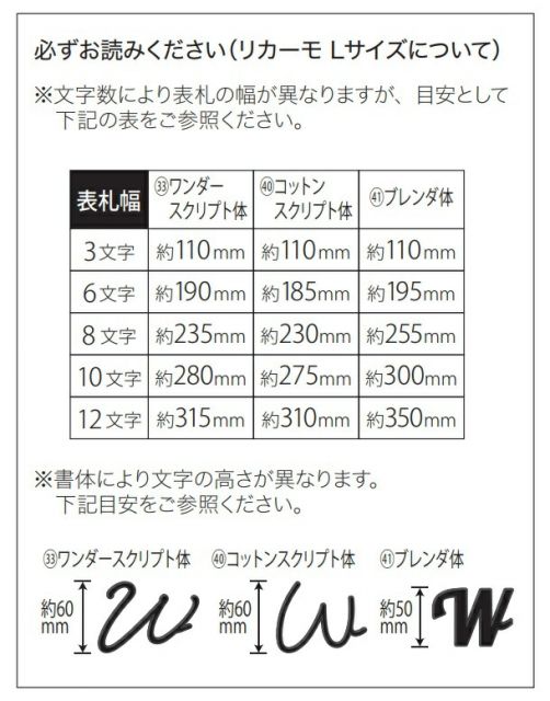 ■文字のサイズ(SサイズとLサイズ)
