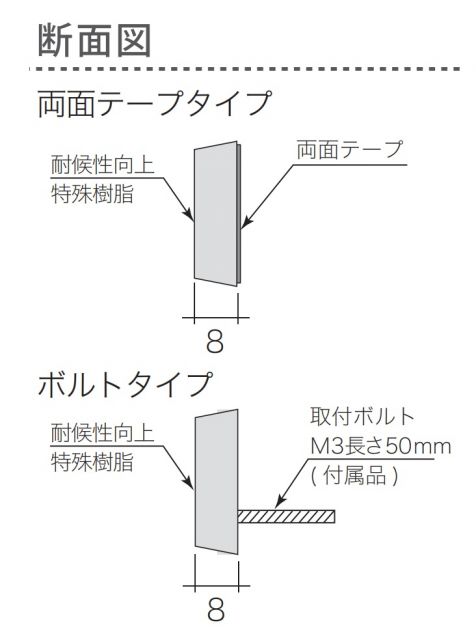 両面テープ仕様とボルト仕様からお選び頂けます。