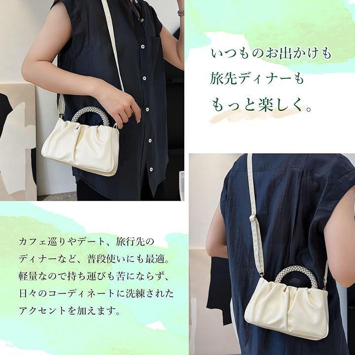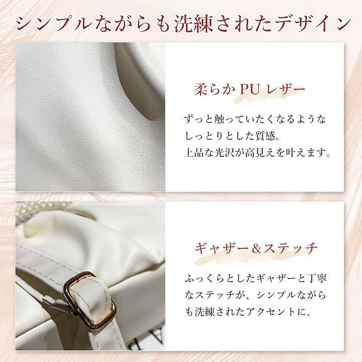 「仕様」素材:PUレザー/裏地:ポリエステル/形状:横長ミニスクエア/開閉:ファスナー/重量:約160g/特徴:ギャザー・ステッチ/共有仕様:肩掛け・斜め掛け・手提げ3WAY対応、4色展開、軽量設計/*モニター環境により色味が異なる場合があります。