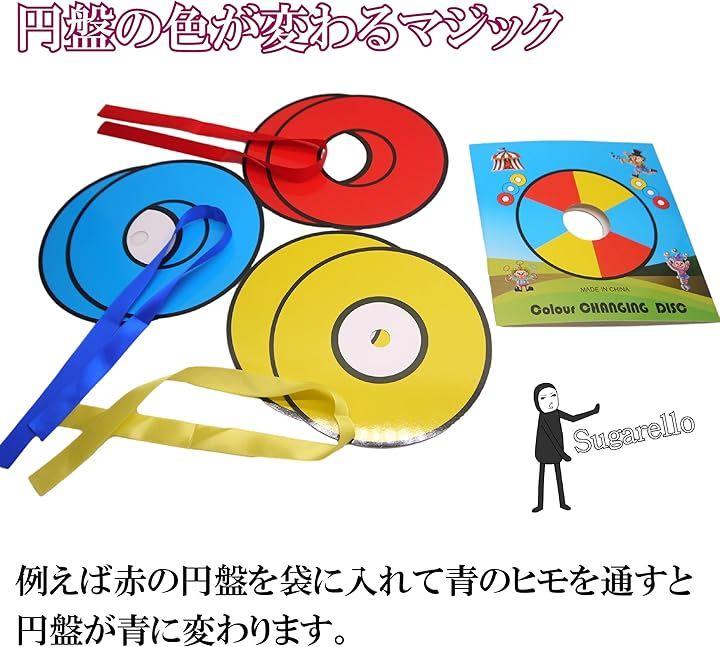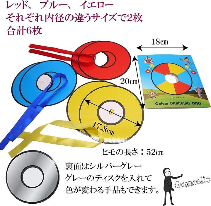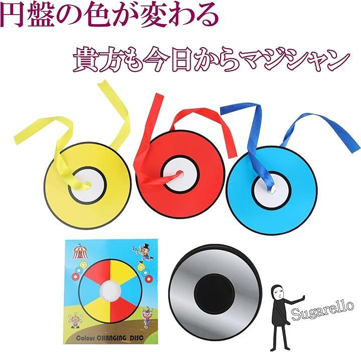 レッド、ブルー、イエロー、円盤の色が瞬時に変わる不思議なマジックです。