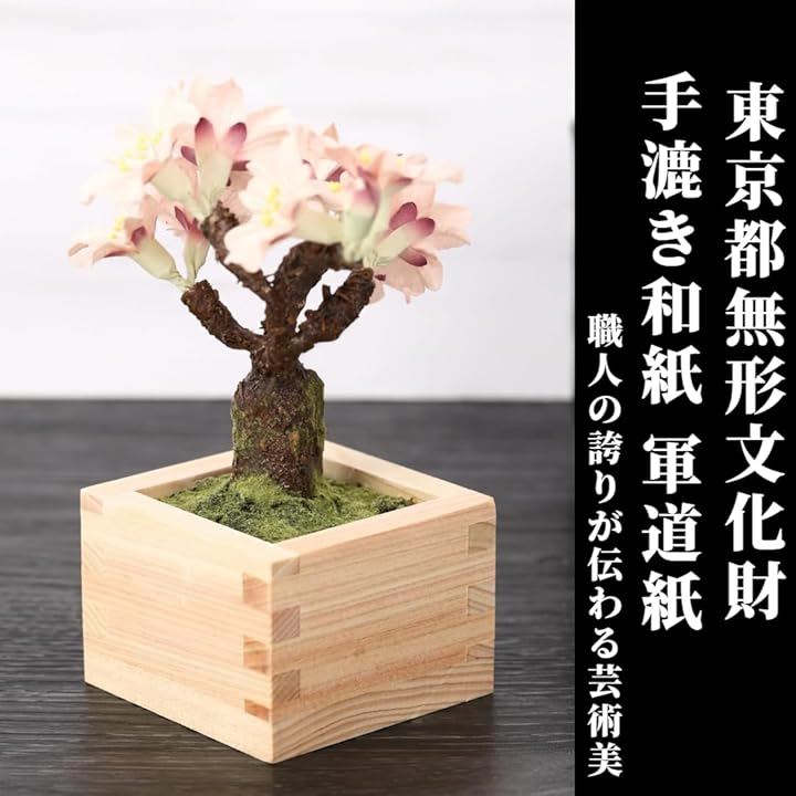 「手漉き和紙の美しさ」東京都無形文化財の手漉き和紙「軍道紙」を使用し、職人が一つ一つ丁寧に作り上げた人工盆栽です。