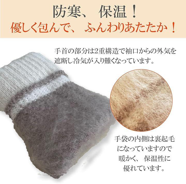 「防寒、保温」このニット手袋は内側裏起毛で暖かく、肌にふんわりとした感触で保温性が良い手袋です。