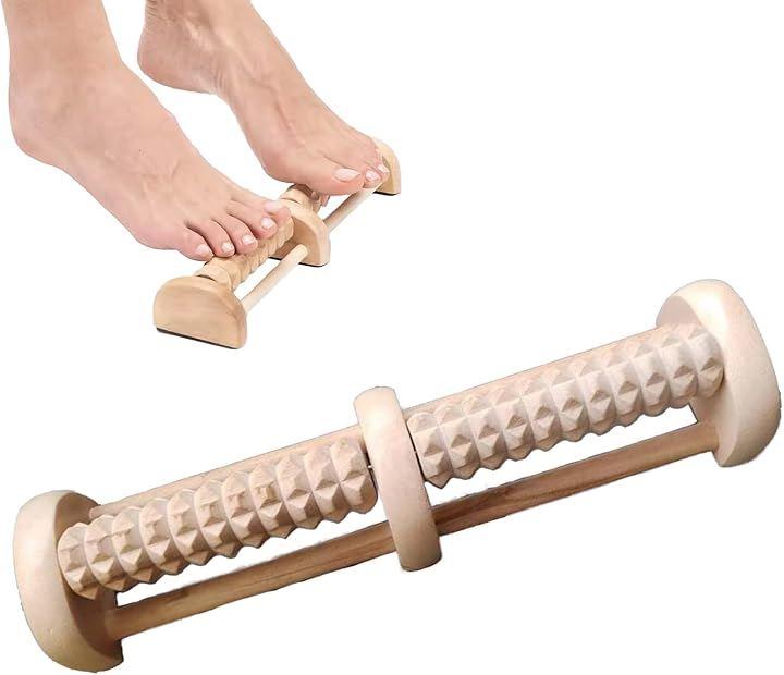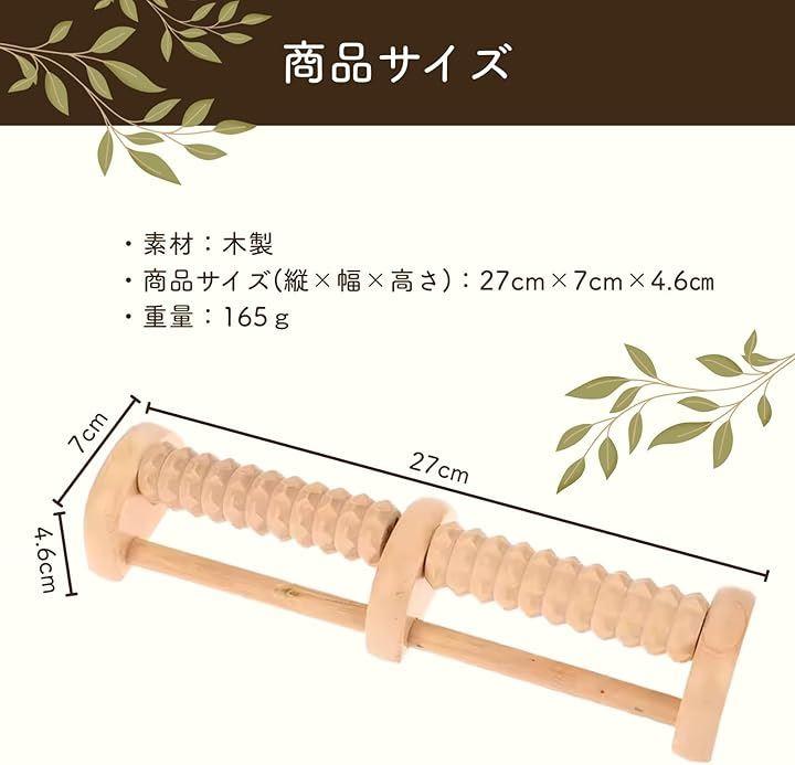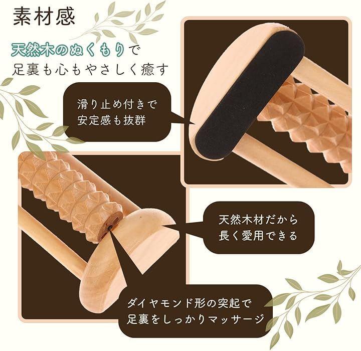 「多数の突起が心地よい刺激」 天然木で作られたローラーには多数の突起が並び、足裏をしっかり刺激。