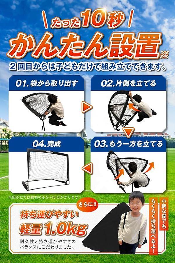 軽量かつコンパクトなサッカーゴールでお子様でも簡単に持ち運び・設置・収納ができます。