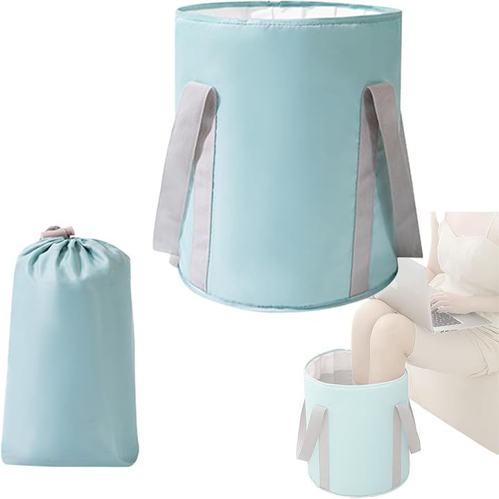 「リラックス&ケアに最適な折りたたみ式足湯バケツ」冷えた足を温めたいときやスポーツ後のアイシングに便利なフットバスバケツ。