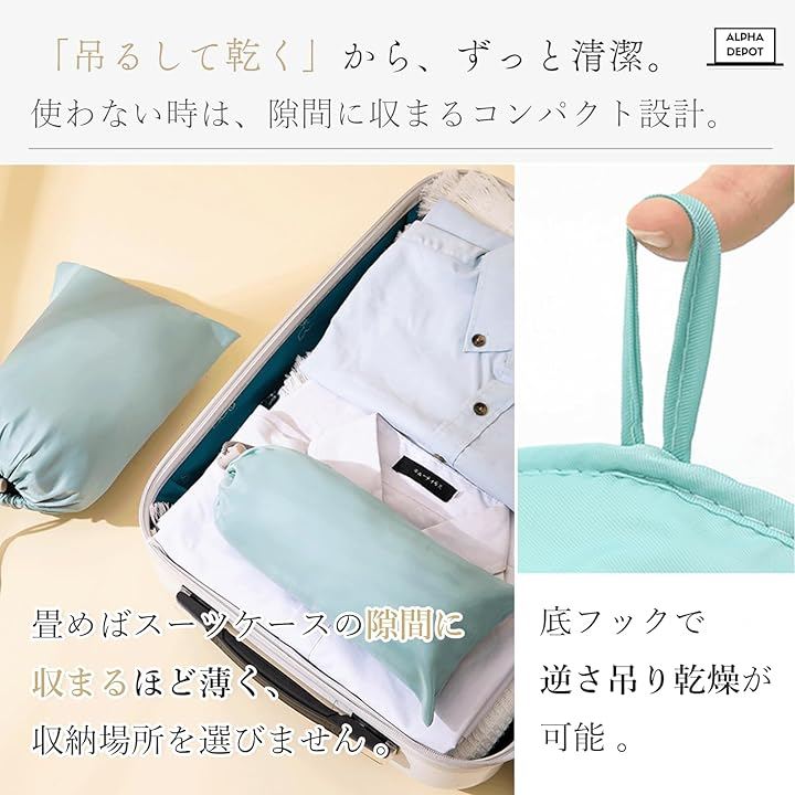 乾燥時は底のフックを使って吊るして干せるため、衛生的に管理できます。