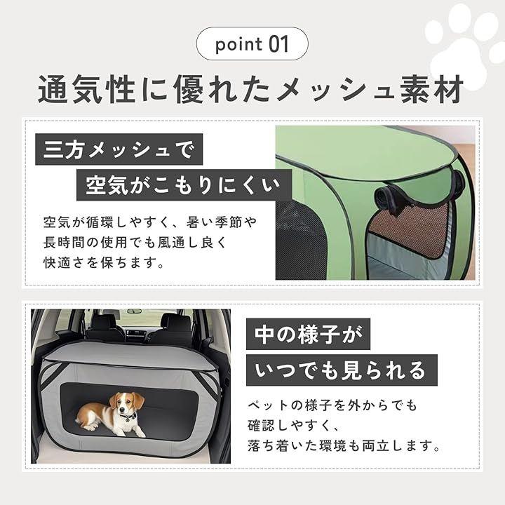 しっかりとしたファスナーで出入り口の開閉ができ、メッシュ部分から外の様子を確認できるため、ペットも落ち着きやすい設計。