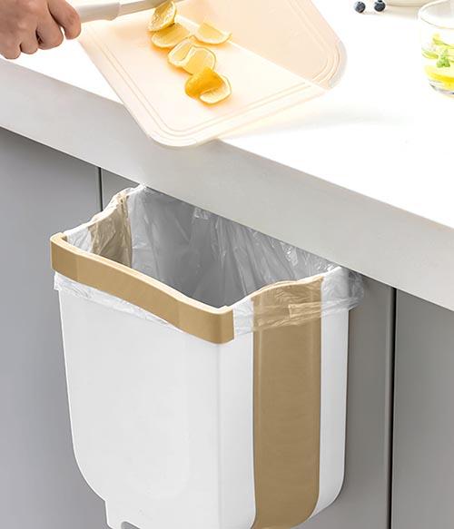 ★野菜など捨てる食材をまな板からそのままゴミ箱にスライドでポイできる壁掛けゴミ箱!*キッチン下のシンクの扉にひっかけて使用するコンパクトでオシャレな壁掛けゴミ箱。引き戸や扉にひっかけるだけの簡単設置!*内側にはゴミ袋が設置でき、野菜のヘタ等捨てる食材をまな板からゴミ箱に落とすだけ!使うときは大口で入れやすく、ストッパー付きでゴミ袋がずれにくい仕様になっております。*折り畳み式なので使わないときは折りたたんで厚さ6cmまで収納できるので邪魔になりません。*ちょっとしたくず入れや小物の収納にもなるオシャレなデザイン引っ掛けて使用するだけでなく自立するので普通のゴミ箱としてもご利用頂けます。