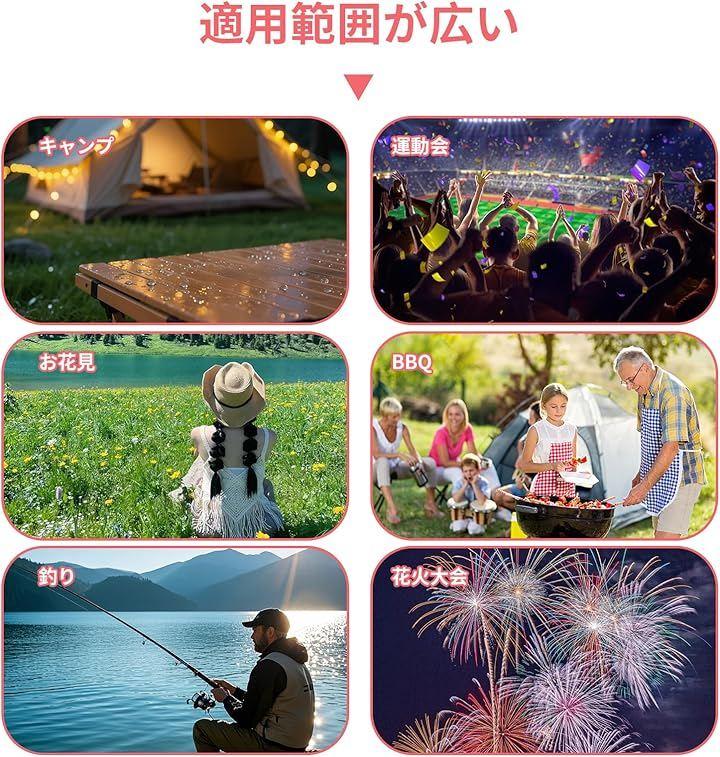 キャンプ、釣り、運動会、お花見、BBQ、釣り、花火大会、ピクニックなど様々なシーンで使えます。