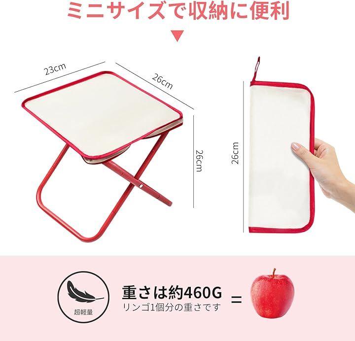 「ミニサイズで収納に便利」コンパクト折り畳み椅子のサイズはとても小さく、たった26cmx23cmx26cmです。