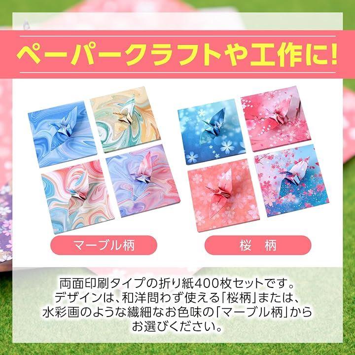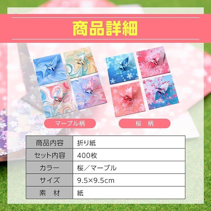 「商品内容」折り紙「セット内容」400枚「カラー」桜/マーブル 「サイズ」9.5x9.5cm「素材」紙 *モニターの環境により、色の見え方に若干差が生じる場合がございます。