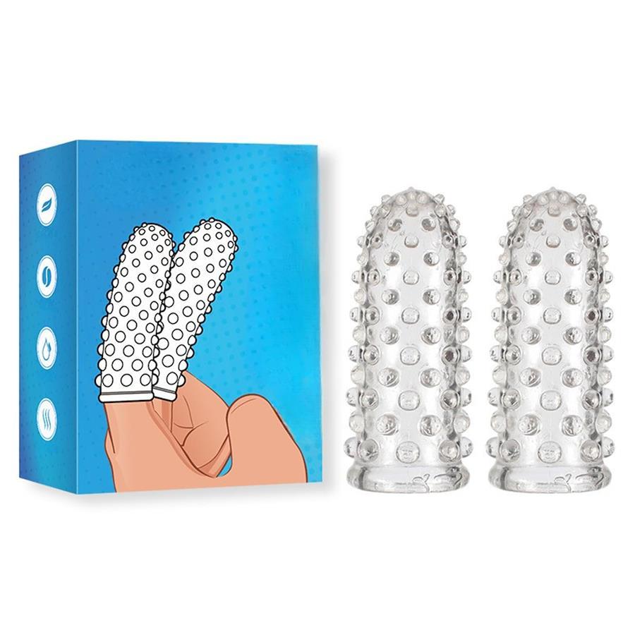 指サック 女性用 シリコン製 イボ付き 2個セット 透明 柔らかい 弾力 Gスポット クリトリス アナル 刺激 クリ責め ゴッドフィンガー秘技 オナニー グッズ 乳首開発 連体仕様 抗菌 薄手 使い捨て フリーサイズ 男女兼用