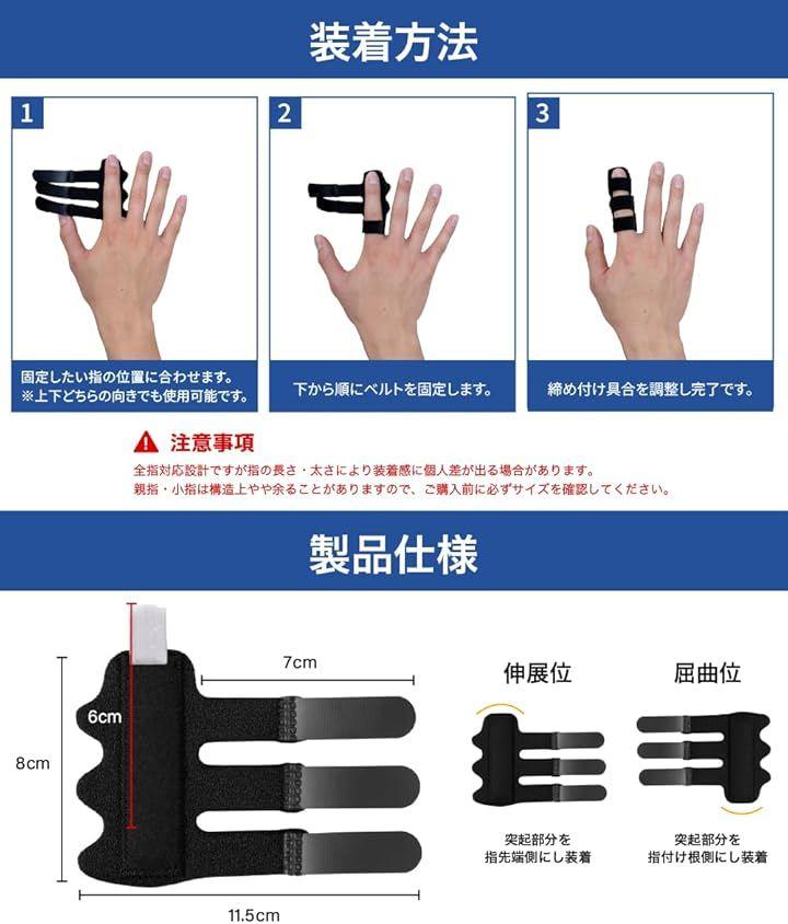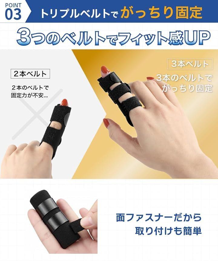 「トリプルベルト構造でズレにくい安定設計」 3本の固定ベルトで指をしっかり包み込み、動作中のズレを防止。