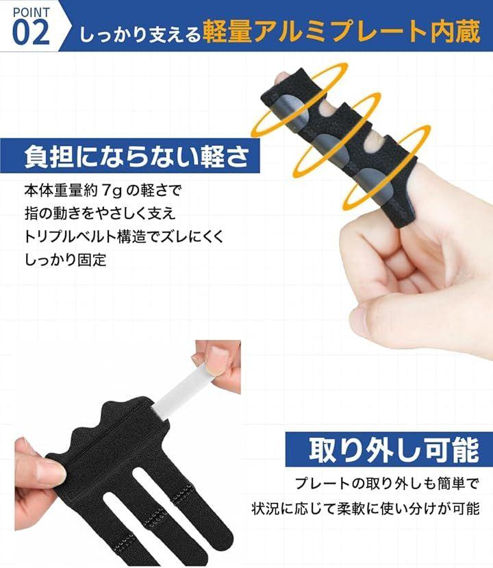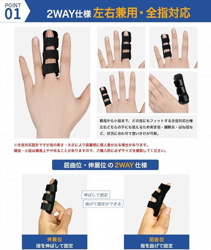 左右どちらの手にも使用可能で、突き指、関節の違和感など、さまざまなシーンで指をやさしくサポートします。