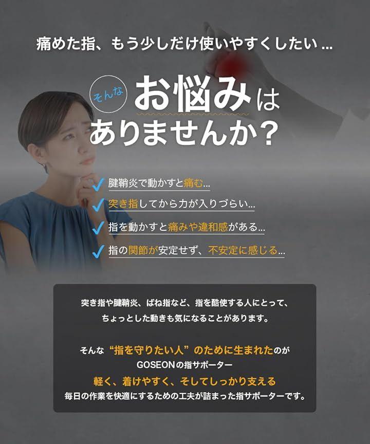 家事、パソコン操作、スポーツ、楽器演奏など、日常のあらゆる場面で指を守り、安定した動きをサポートする軽量タイプの指サポーターです。