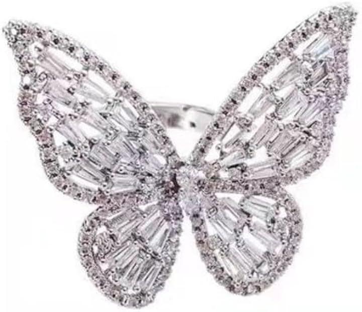 繊細な蝶々モチーフに、キラキラと輝くフェイクダイヤを贅沢に散りばめた、指先で存在感を放つ華やかなデザインです。