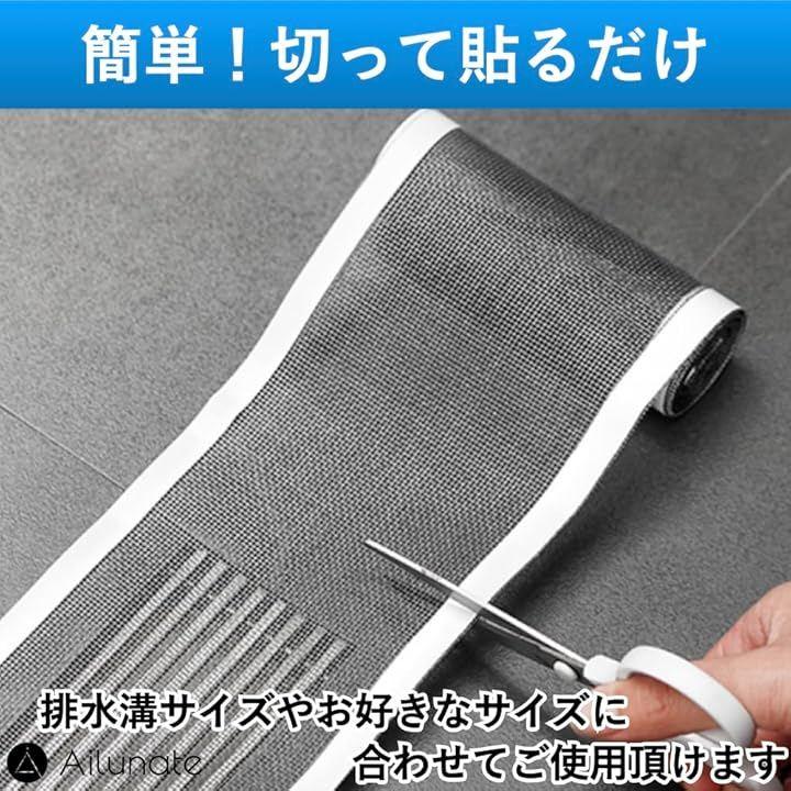 「排水溝の詰まりを防げる」排水溝の上にメッシュカバーを貼り付けて髪の毛や糸くずなどのゴミが流れ落ちることを防げます。
