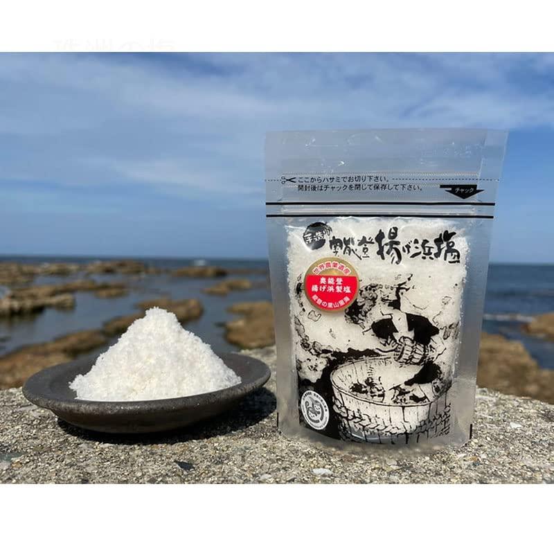 能登半島珠洲の仁江(にえ)海岸で500年前から続く伝統的な製法「揚げ浜式製塩」で作られたお塩です。