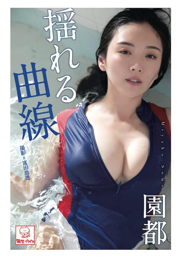 競泳水着姿の園さんが、たわわに揺れる魅惑の写真集!巻末に本人直筆の後書き&サインもあります♪(園都:1992年11月5日生まれ:撮影時年齢28歳)