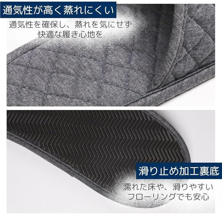 「年中快適。滑り止め&通気性抜群」滑り止め加工された裏底で、濡れた床や滑りやすいフローリングでも安心。