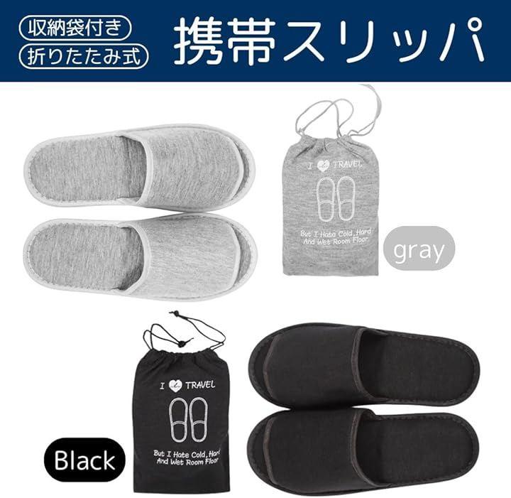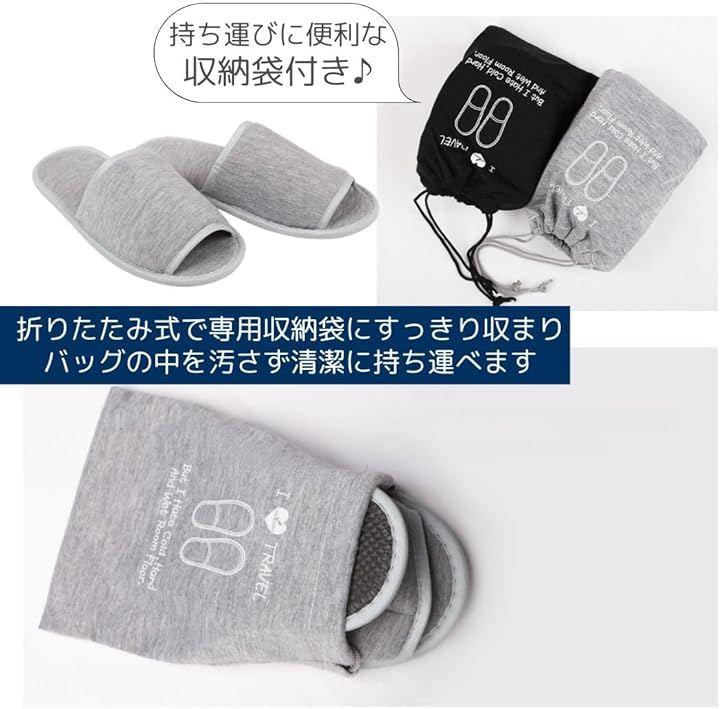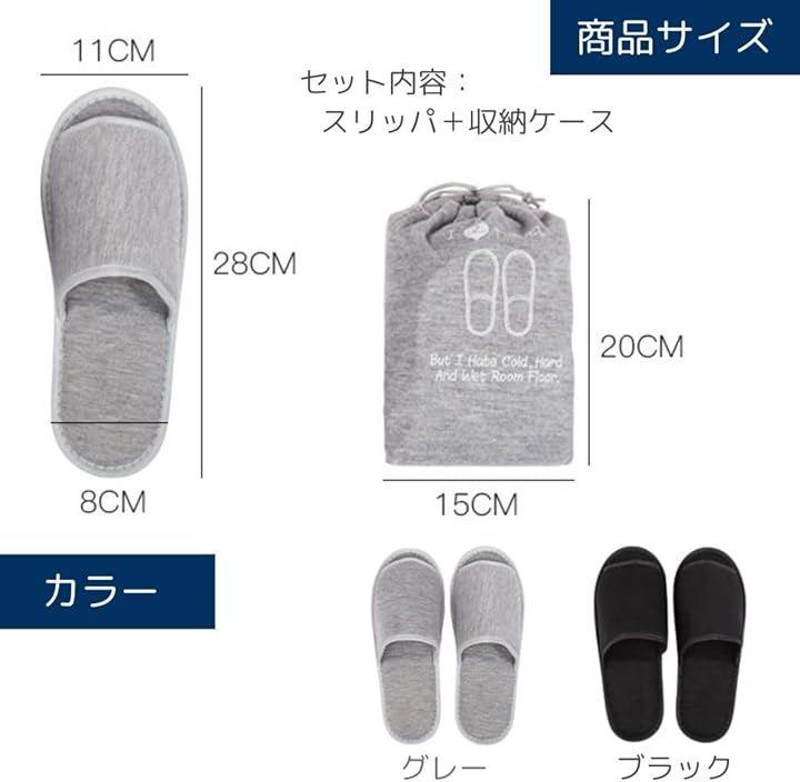「商品詳細」セット内容:スリッパ+収納ケース サイズ:(本体)28cm x 11cm (かかと部分の幅)8cm (収納ケース)20cm x 15cm カラー:ブラック/グレー