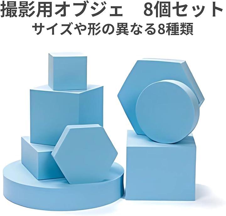 被写体の立体的効果を出しメインアイテムの魅力を引き立てる8種セットの撮影用オブジェです。
