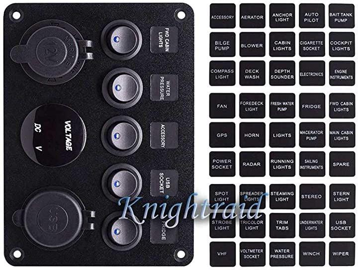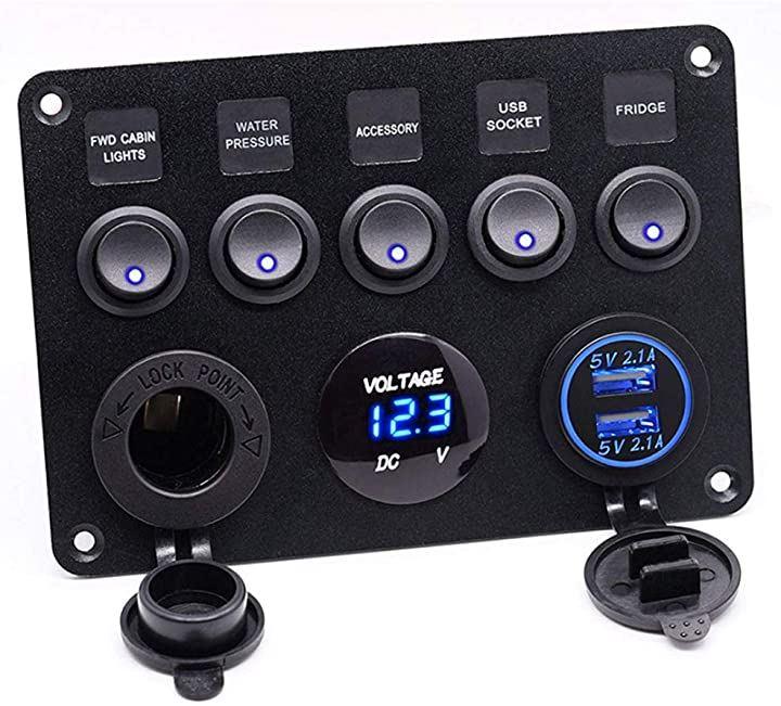 12V24V対応防水スイッチパネルデュアルシガーライターシガーソケット2.1AUSBLED電圧計付きマリンボート漁船