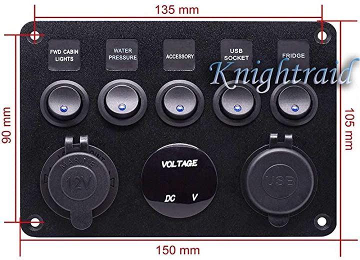 ・5スイッチ・電圧計・シガーソケット・USBポート2口搭載と嬉しい機能盛りだくさんな防水仕様の高性能スイッチパネルです。
