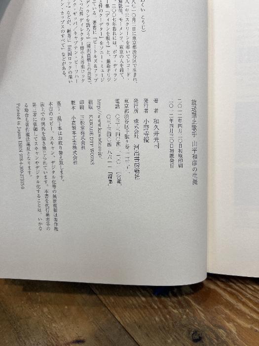 e02-260312002010015-000放送禁止歌手 山平和彦の生涯 河出書房新社 和久井 光司アルバム『放送禁止歌』の2曲が猥褻とされ発売禁止。長い沈黙を破り復活を遂げた矢先、ひき逃げ死……時代の揺らめきを不器用に歌い上げた伝説のフォークシンガーを追う。重松清氏推薦!9784309273150<%% SHIPPING %%>表紙に、通常使用による擦れ、があります。見返し(表紙の裏)に著者作の絵とサインがあります。本は、おおむね良好な状態です。※注意事項※■商品・状態はコンディションガイドラインに基づき、判断・出品されております。■付録等の付属品がある商品の場合、記載されていない物は『付属なし』とご理解下さい。