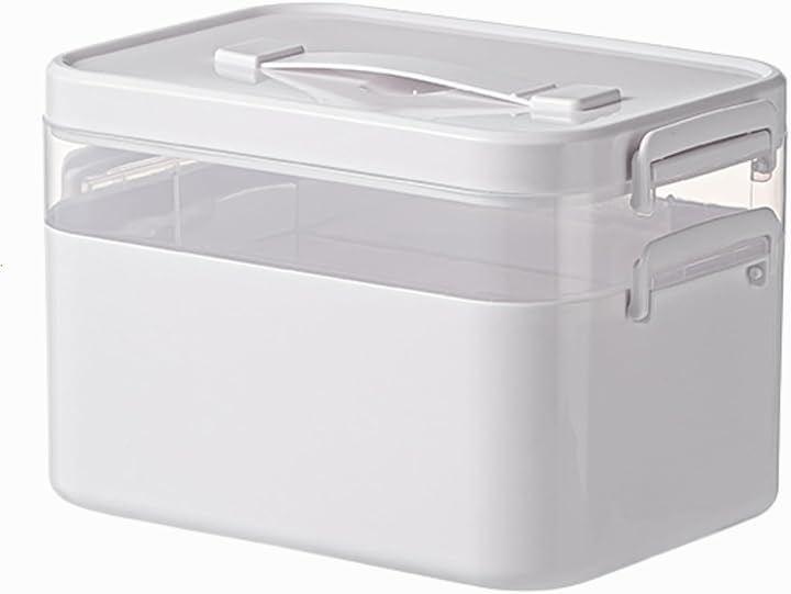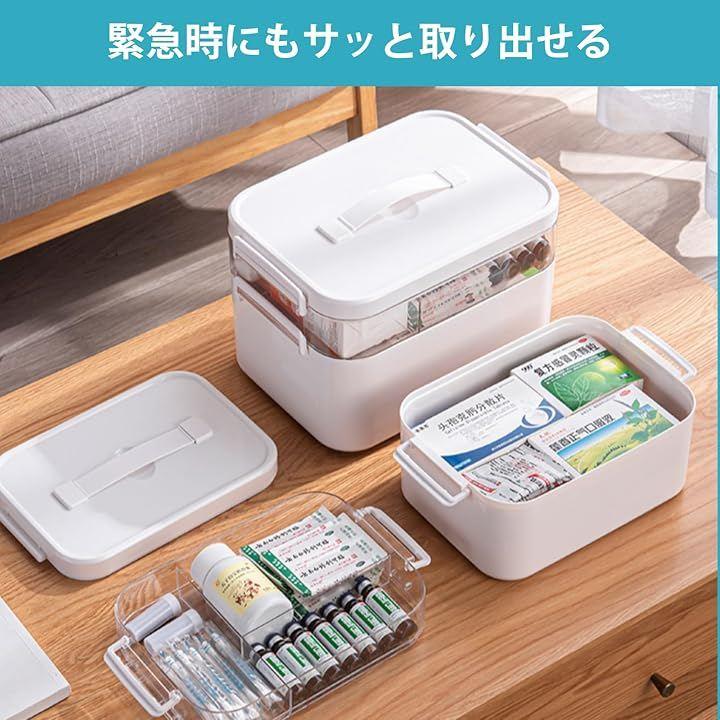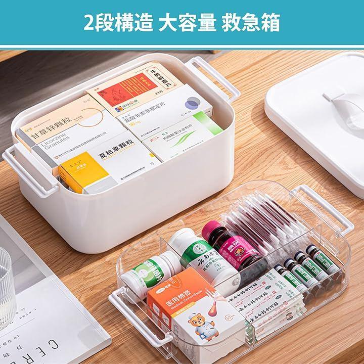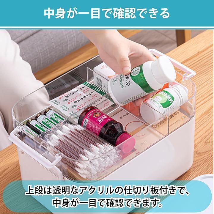 「2段構造で効率よく整理可能」上段は透明なアクリルの仕切り板付きで、中身が一目で確認できるため、必要な薬を箱を開ける前に素早く把握できます。