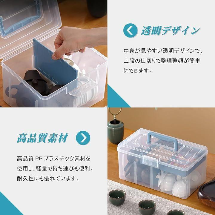 「透明デザイン」中身が見やすい透明デザインで、上段の仕切りで整理整頓が簡単にできます。