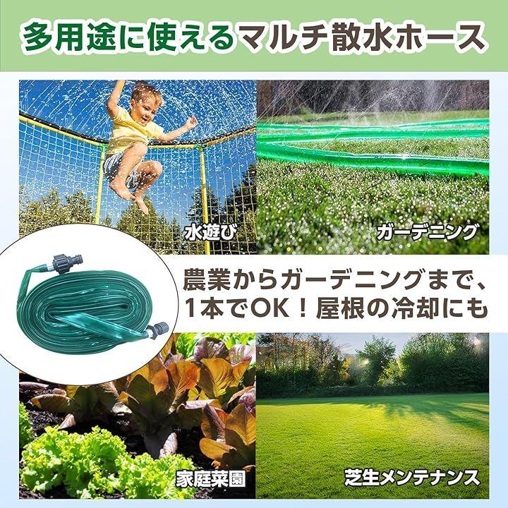 「多機能散水ホース」農業、ガーデニング、芝生のメンテナンス、屋外冷却など幅広い用途に対応。