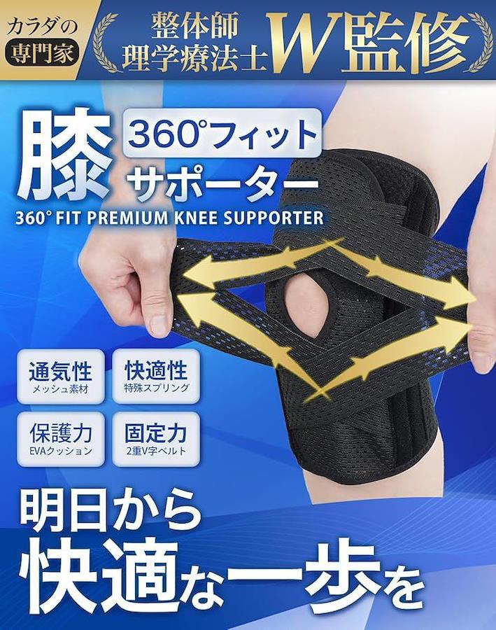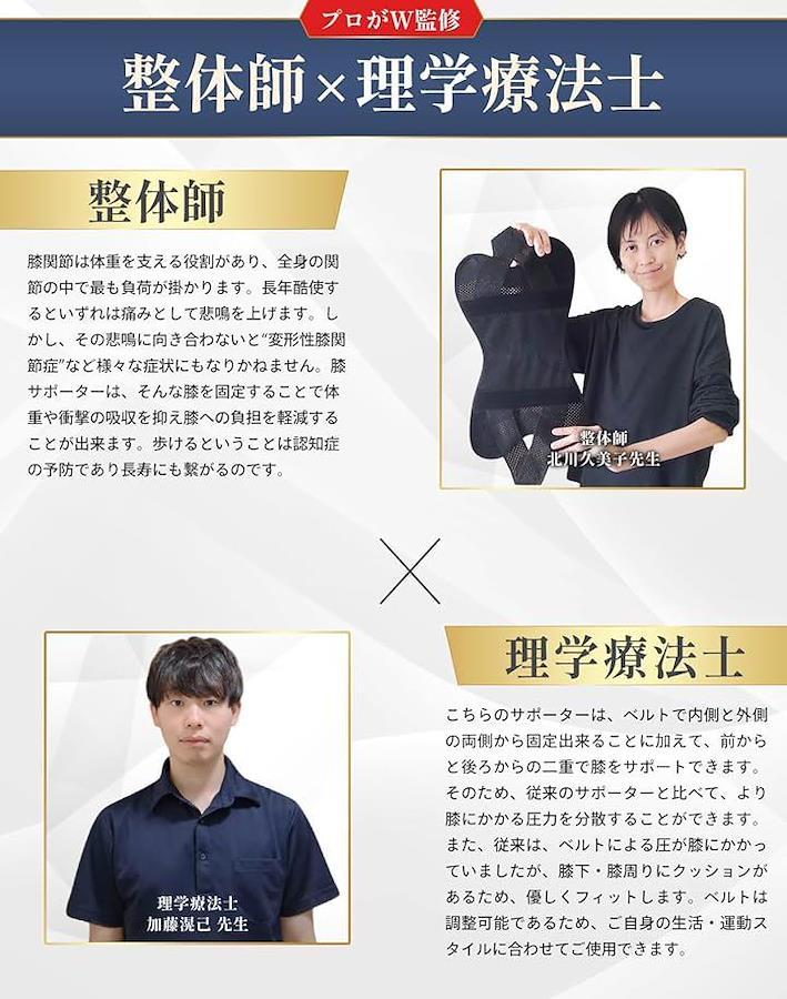 「整体師・理学療法士のW監修xx2重xx V字サポート構造で快適なフィット感」 GOSEONの膝サポーターは、整体師・理学療法士の意見をもとに設計されたxx2重xxV字ベルト構造を採用。