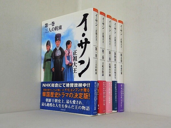 The paperback edition of "Yi San: King Jeongjo," published by Takeshobo Bunko. Written by Ryu Eun-kyung, screenplay by Kim Yi-young, planned by Lee Byung-hoon and Choi Wan-gyu. Volumes 1-5. All volumes include a dust jacket.