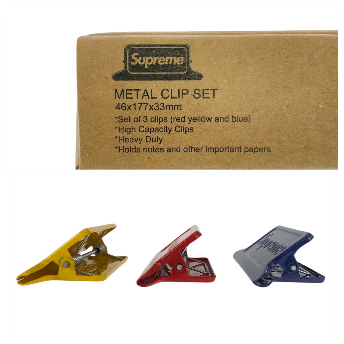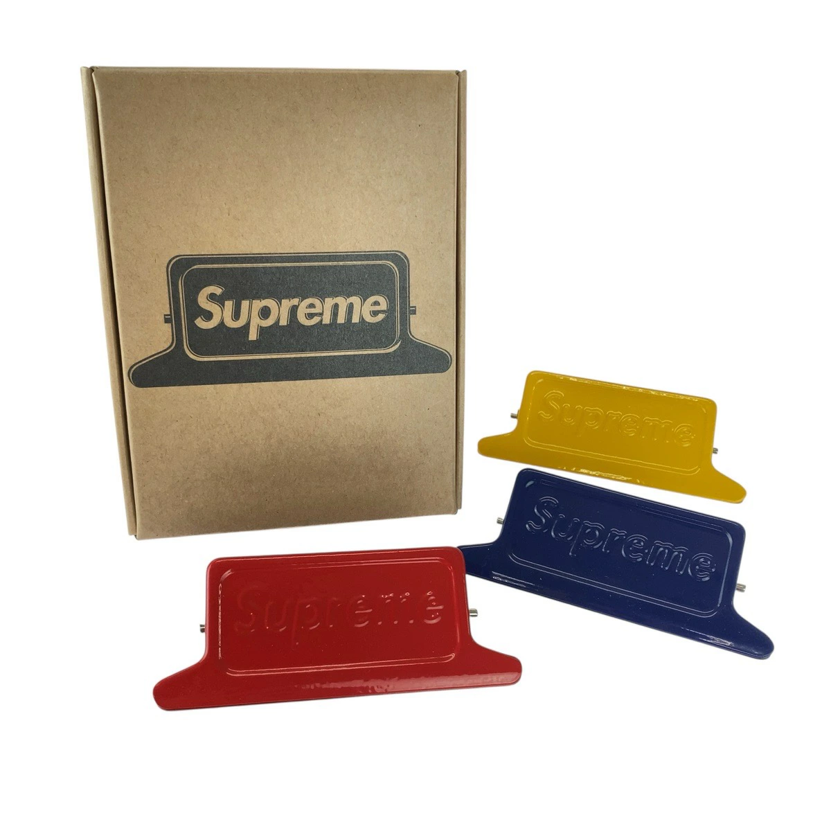 Brand new, unused Supreme x DULTON red, blue, and yellow metal clip set for men (505549) [pre-owned]