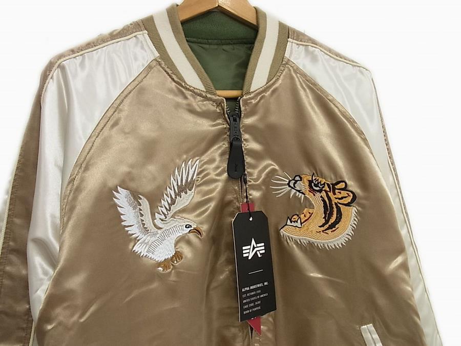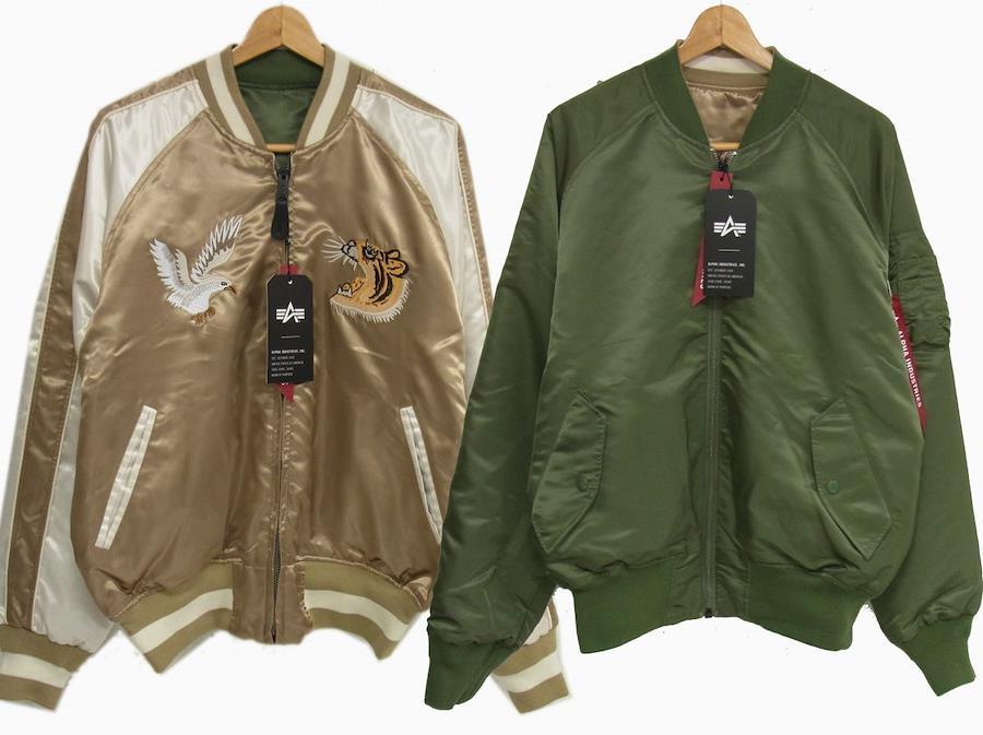 ●表面はスカジャン、裏側はベーシックな無地のL-2B(中綿なしMA-1)として着ていただける嬉しい2WAYブルゾンです。