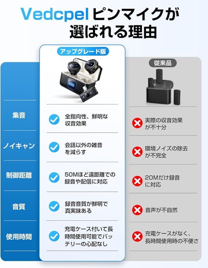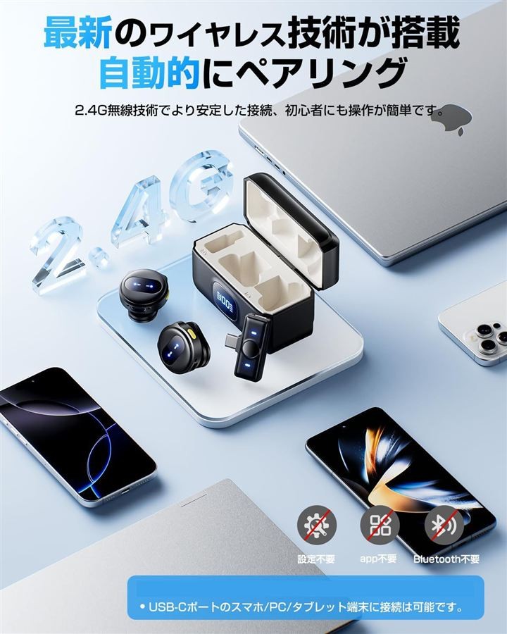 「ノイズキャンセリングチップ&高音质」ワイヤレスピンマイクはノイズキャンセリングチップを搭載しております。