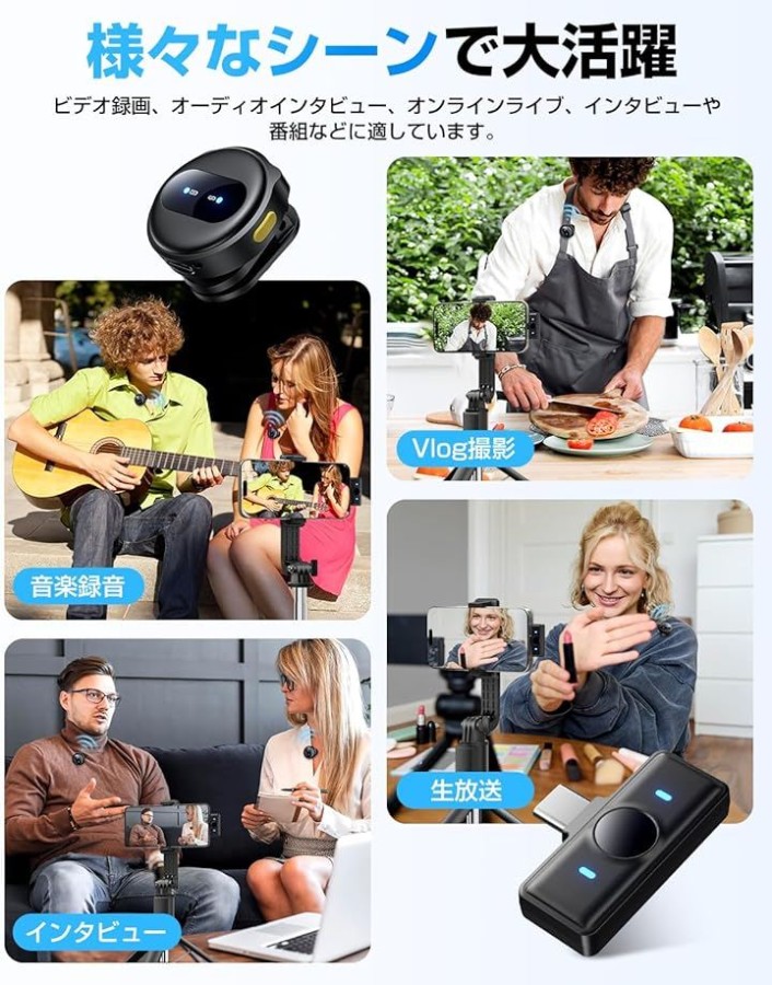 このピンマイクワイヤレスはインタビュー、オンラインミーティング、音楽録画、ビデオ/Vlog撮影などで優れた録音効果を提供します。