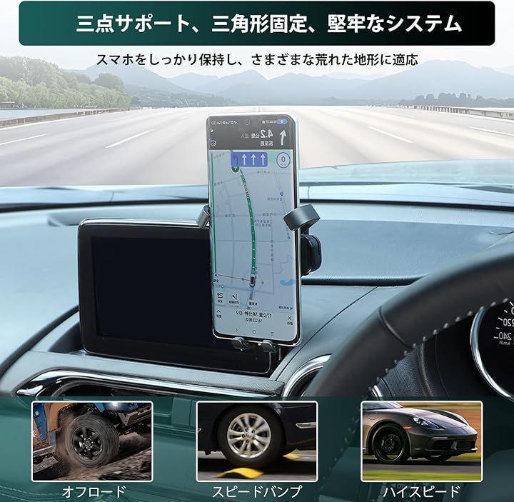 「車種専門設計」専用にデザインされたこのスマートフォンホルダーは、センターディスプレイに簡単に取り付けられます。