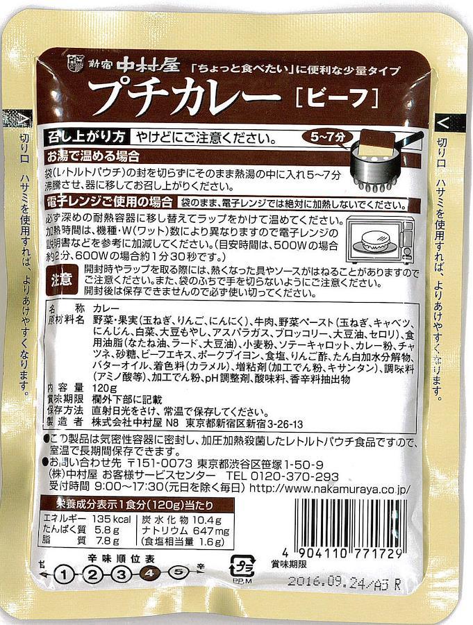 内容量:120×3袋カロリー:135kcal原材料:野菜・果実(玉ねぎ、りんご、にんにく)、牛肉、野菜ペースト(玉ねぎ、キャベツ、にんじん、白菜、大豆もやし、アスパラガス、ブロッコリー、大豆油、セロリ)、食用油脂(なたね油、ラード、大豆油)、乳等を主要原料とする食品、小麦粉、ソテーキャロット、砂糖、カレー粉、食塩、ビーフエキス、ポークブイヨン、チャツネ、りんご酢、バターオイル、増粘剤(加工でん粉、キサンタン)、調味料(アミノ酸等)、着色料(カラメル)、加工でん粉、pH調整剤、酸味料、香辛料抽出物、香料商品サイズ(高さx奥行x幅):30mmx170mmx130mm【重要】メーカーによる商品リニューアルに伴いパッケージ(内容量も含む)変更が行われた場合、新パッケージでお届け致します事ご了承願います。
