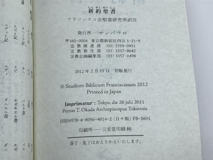 商品名:新約聖書(新版)FB-B6N サンパウロ フランシスコ会聖書研究所