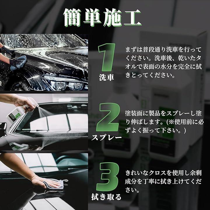 「安心の仕様&付属品」コーティング剤(中性タイプ)500mlx1 、スプレーノズルx1、マイクロファイバークロスx2、手袋(左右)x1 、日本語説明書x1 。