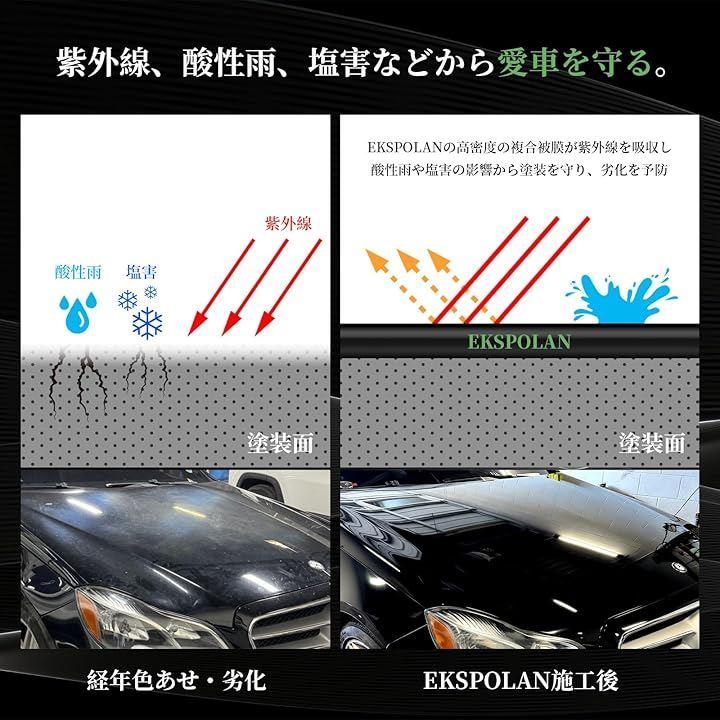 「使用箇所:ボディ、樹脂部分、窓ガラス(フロントガラスには不可)、ホイール(高温にならない部分)など、ラッピングフィルムとプロテクションフィルム」